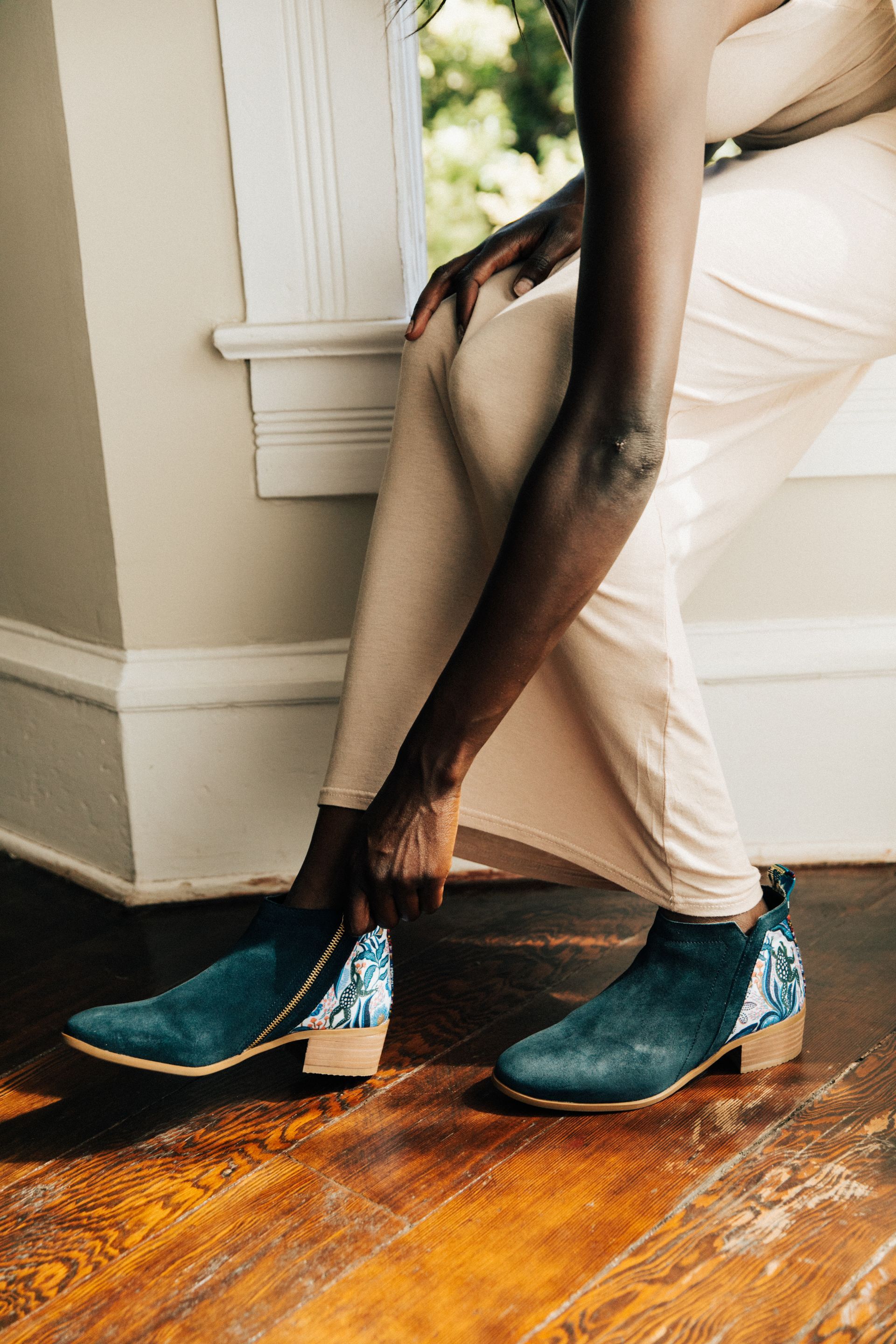 • Verfijnd blauw-groen suède van hoge kwaliteit.